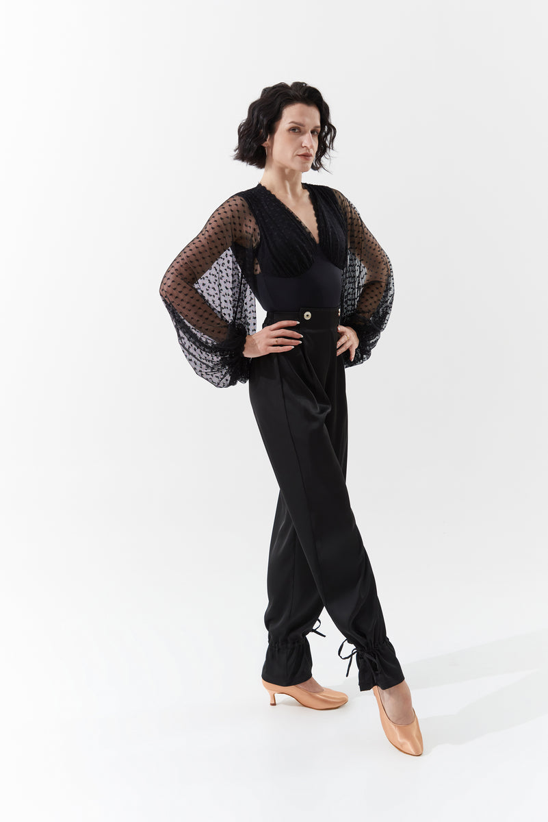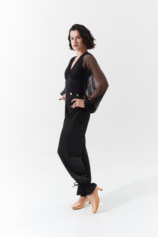 DANCE QUEEN 899-4 Black V Neck Lace Long Sleeve Ballroom Practice Dance Sport Leotard Sale