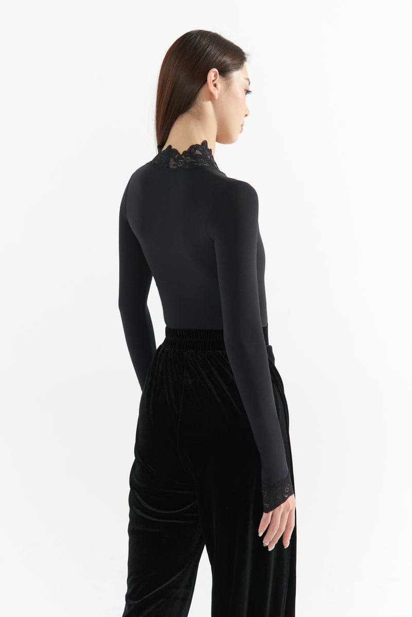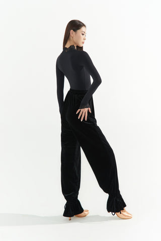 DANCE QUEEN 1059 Black Neck Lace Ballroom Practice Dance Sport Leotard - S