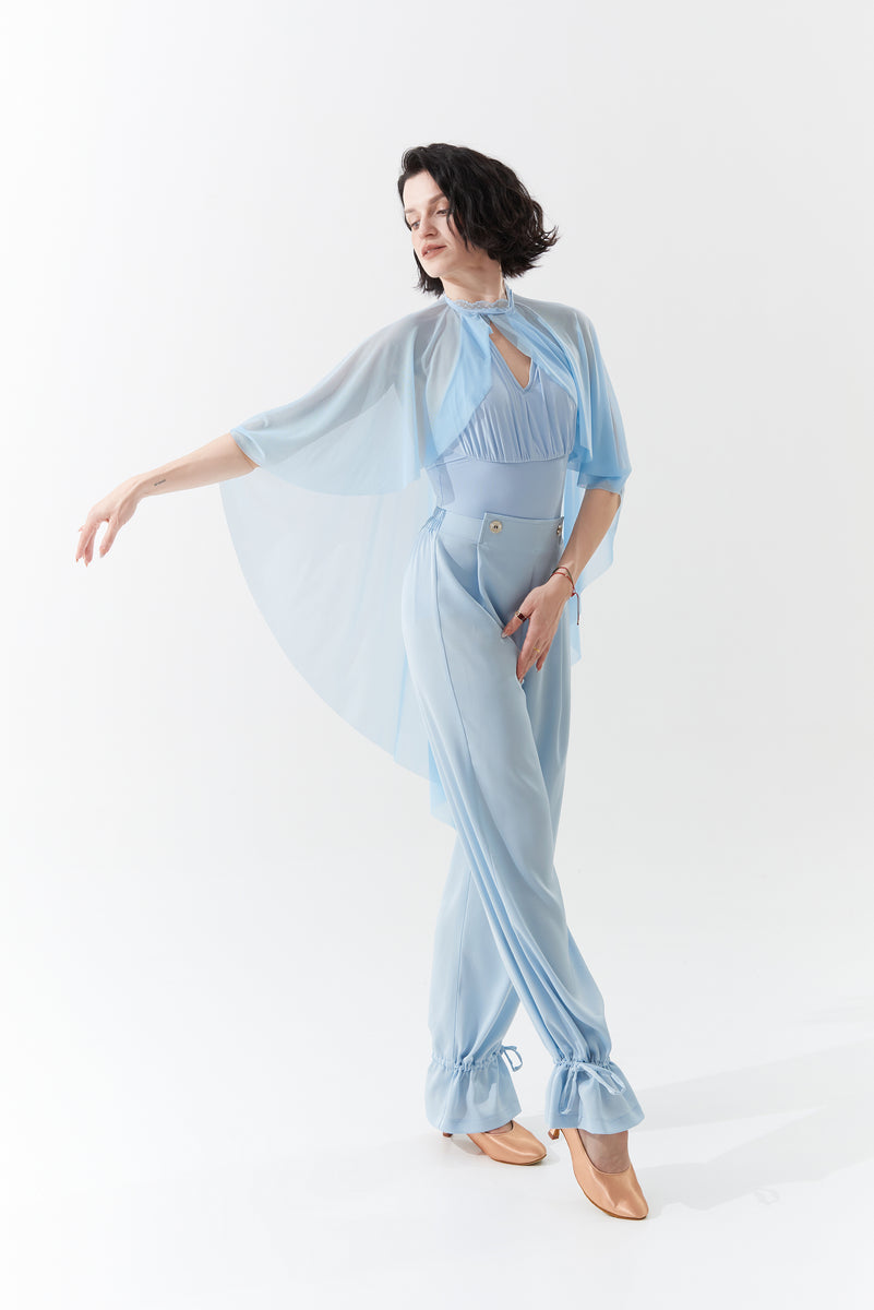 DANCE QUEEN 266-29 Light Blue Elastic Waistband Ballroom Practice Dance Sport Trouser Im Angebot