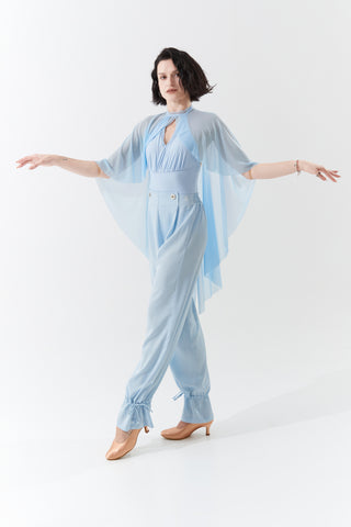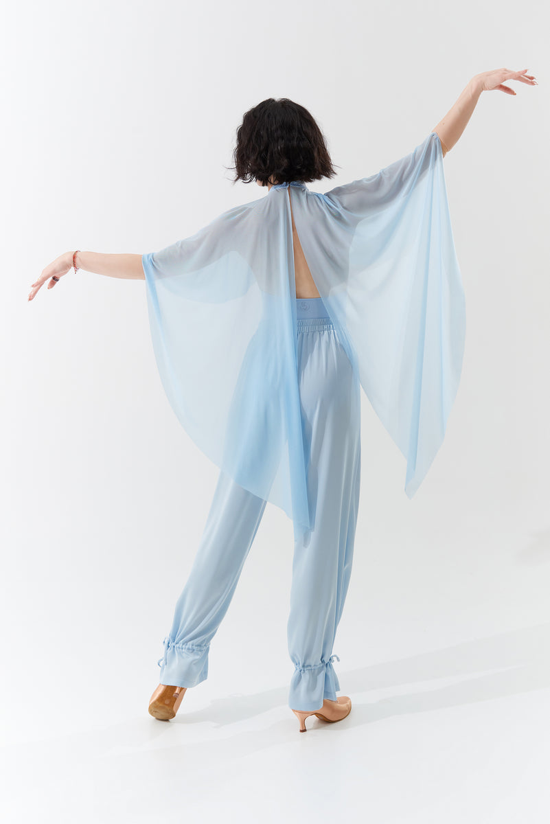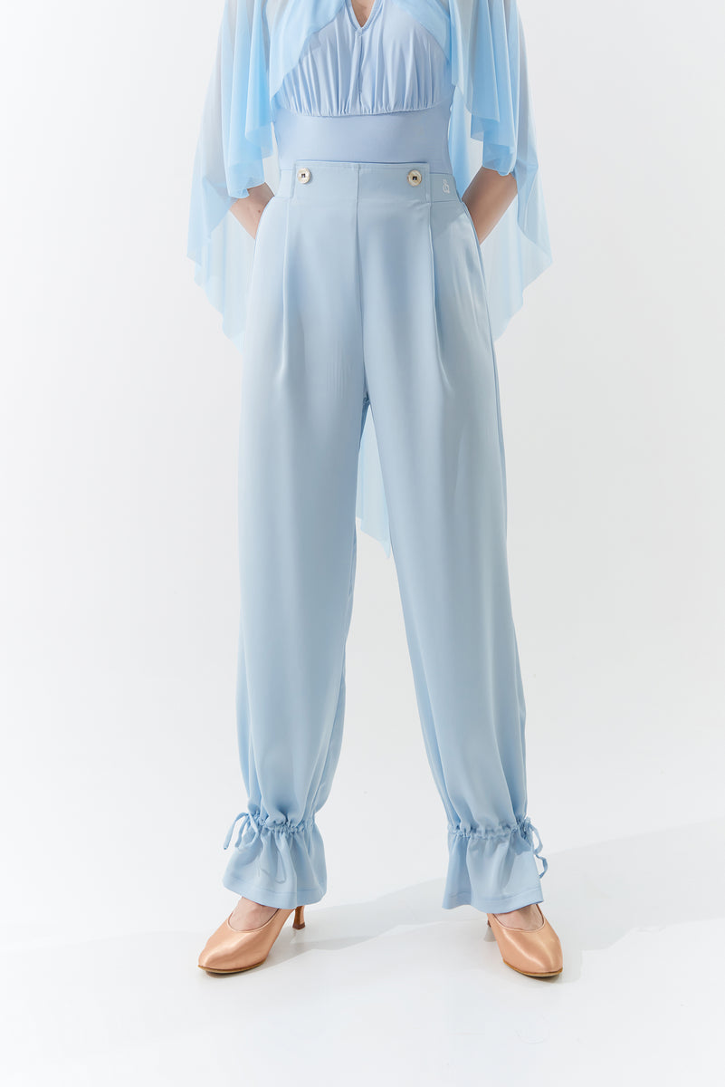 DANCE QUEEN 266-29 Light Blue Elastic Waistband Ballroom Practice Dance Sport Trouser - S
