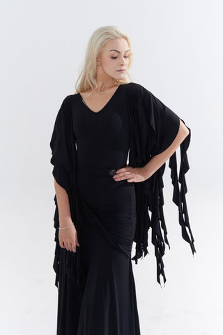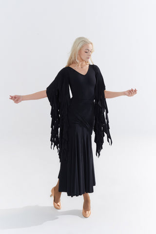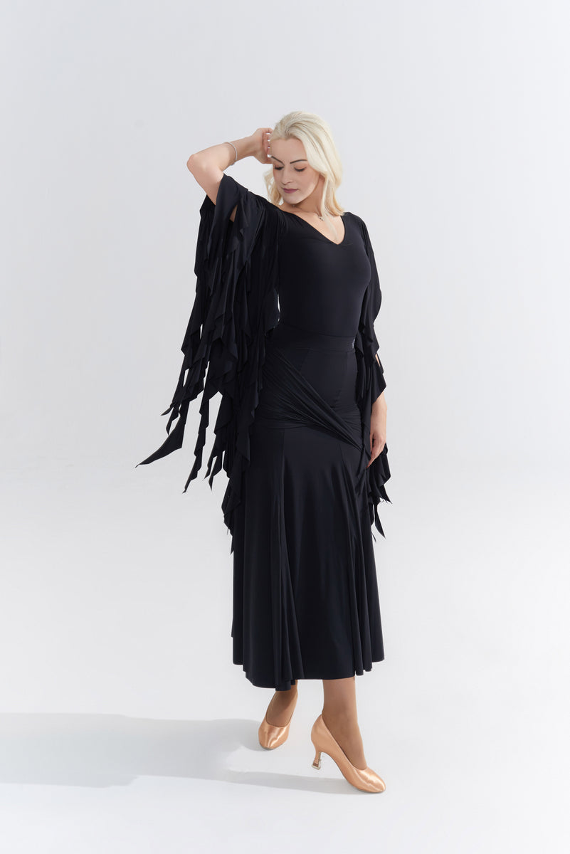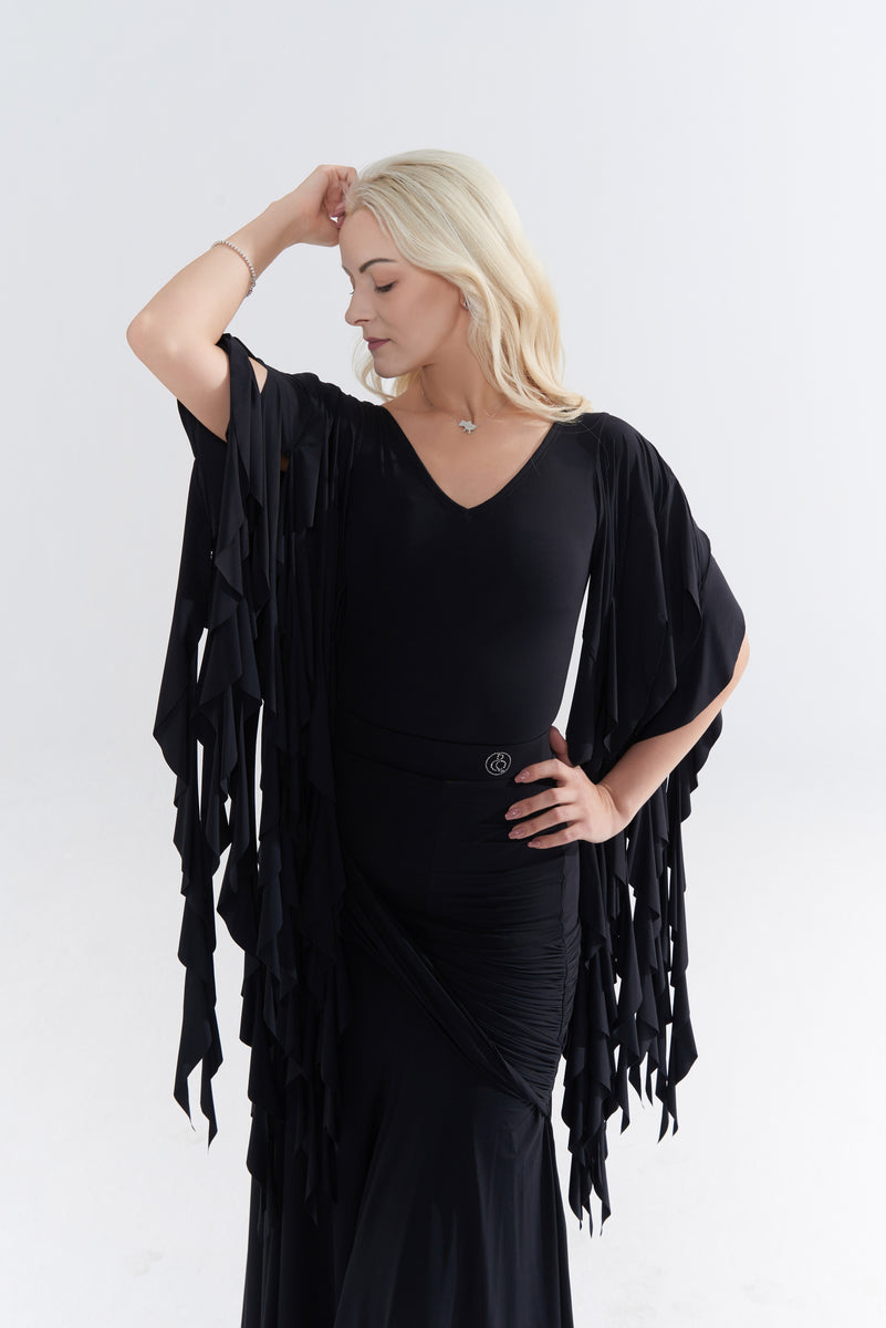 This ballroom sport leotard combines technical precision with understated elegance, featuring carefully crafted float elements that complement your movement vocabulary. The classic black construction allows your technique to take center stage while the reinforced design withstands the rigorous demands of competitive training and performance. Built for dancers who understand that excellence requires both superior construction and refined aesthetics, this leotard performs flawlessly across studio rehearsals and competition floors. Invest in a garment that matches your dedication to the art.