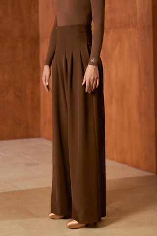 DANCE QUEEN 851-9 High Waist Brown Wide Leg Woman Practice Trouser - Brown / S