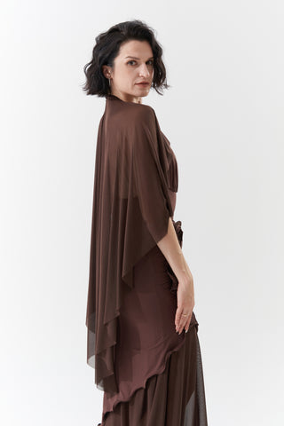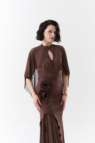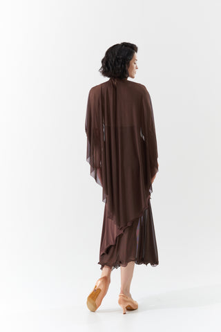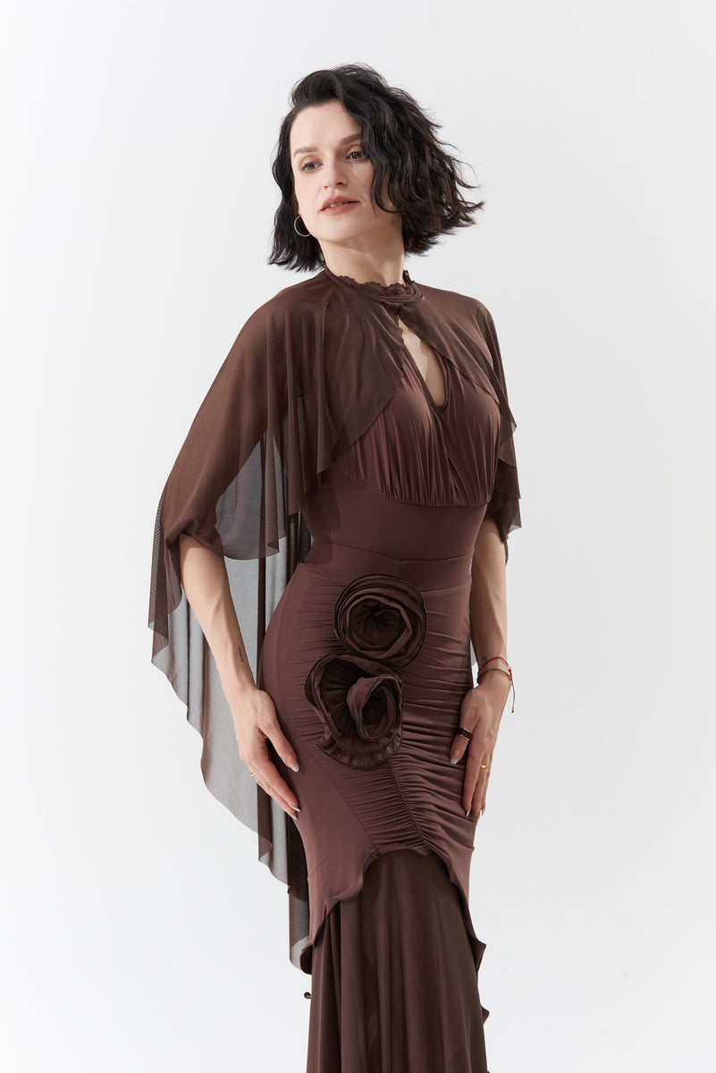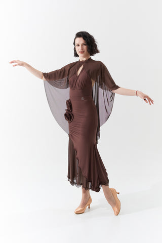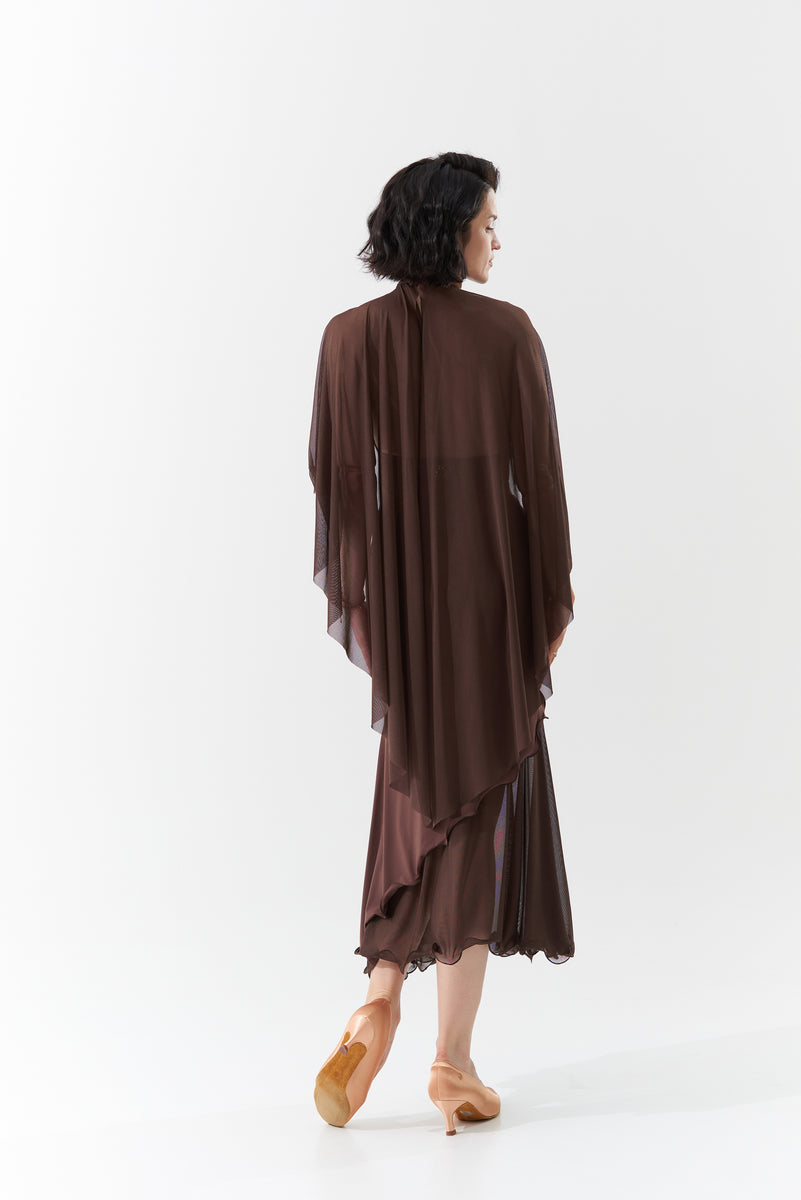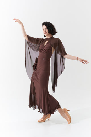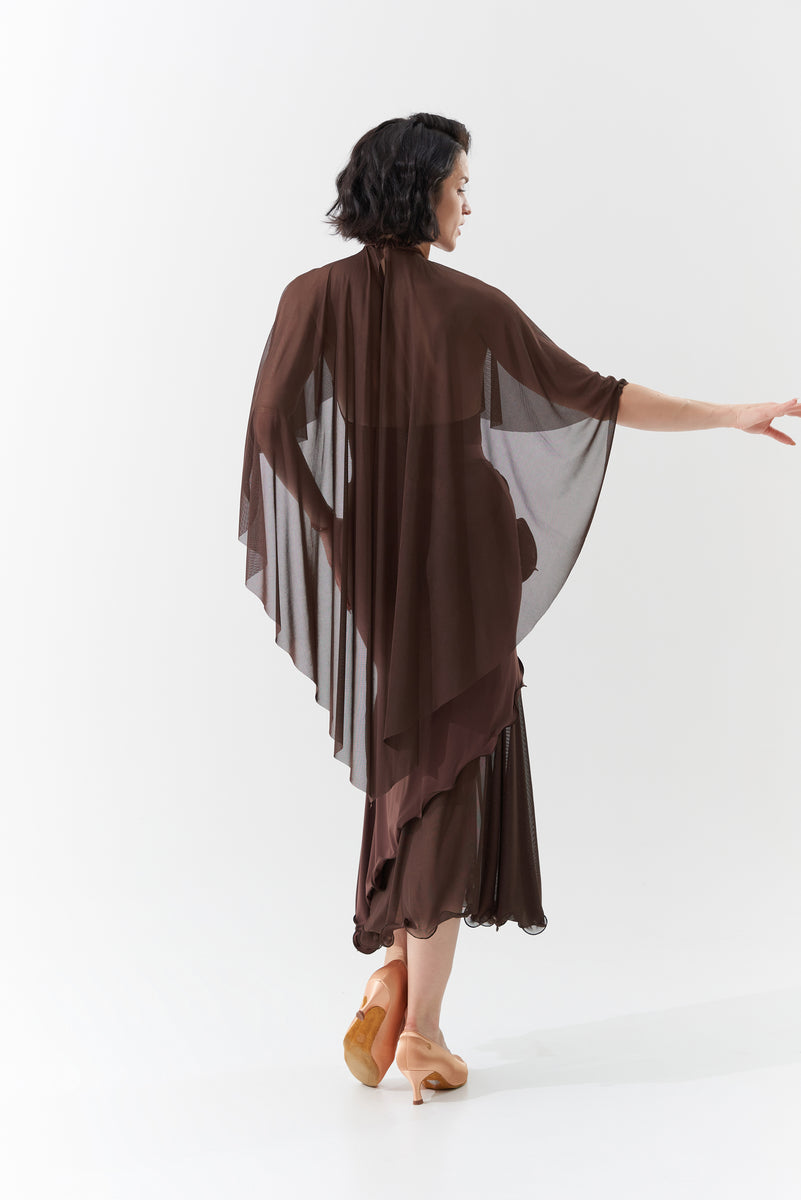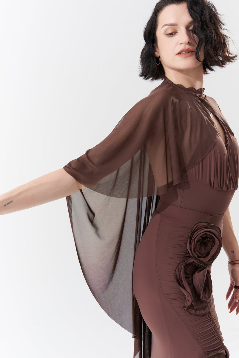 DANCE QUEEN 1090-3 Chocolate Halter Neck Mesh Big Float Ballroom Practice Dance Sport Leotard - S