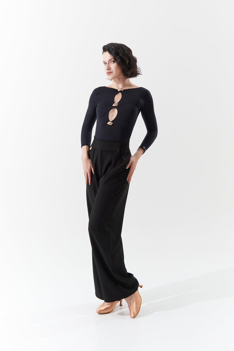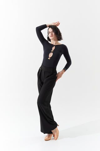 DANCE QUEEN 1093 Black Hollow Metal Buckle Ballroom Practice Dance Sport Leotard - S