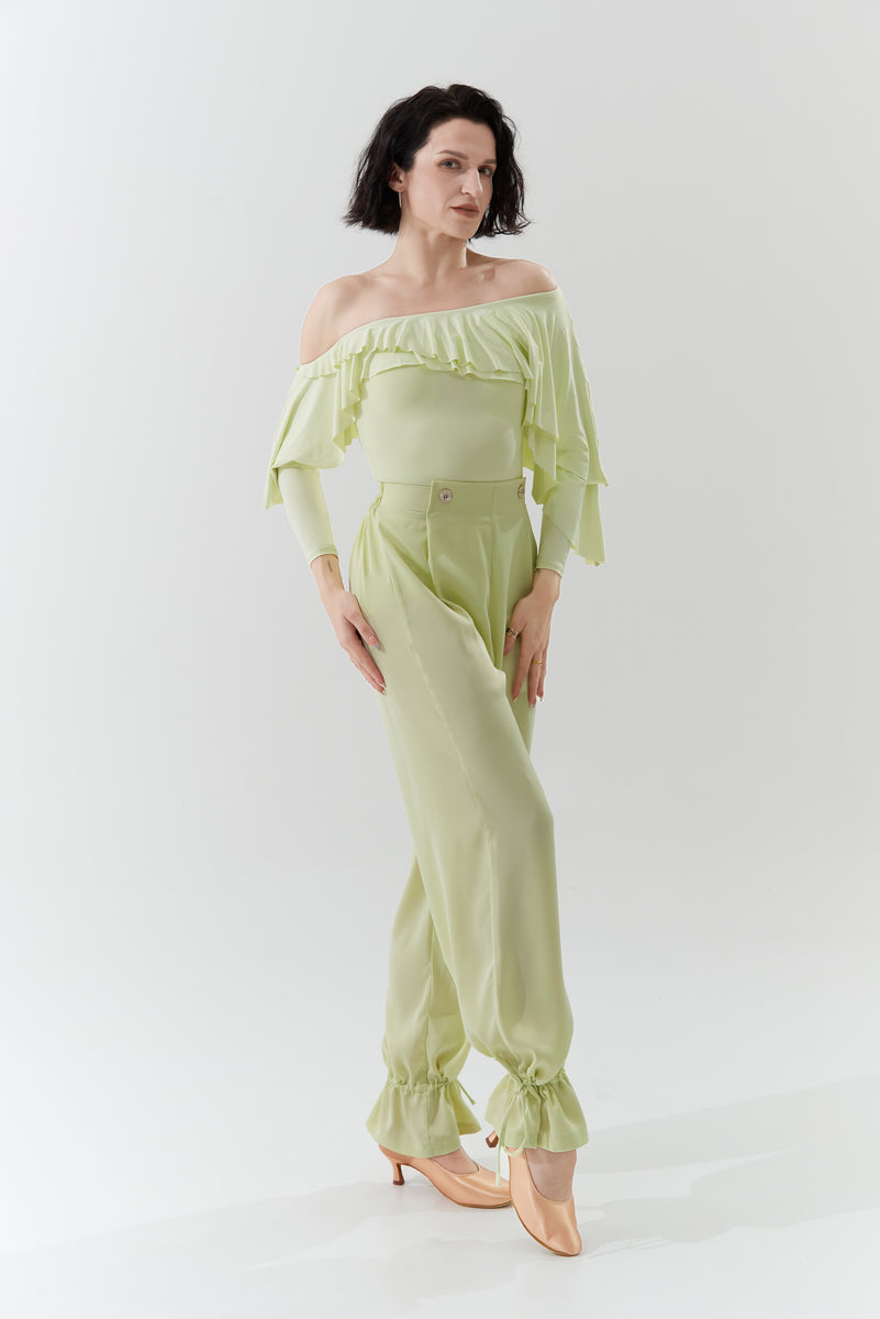 DANCE QUEEN 266-30 Aloe Vera Green Elastic Waistband Ballroom Practice Dance Sport Trouser En oferta