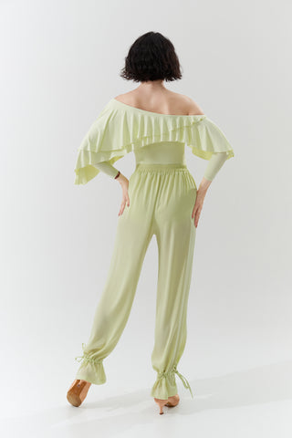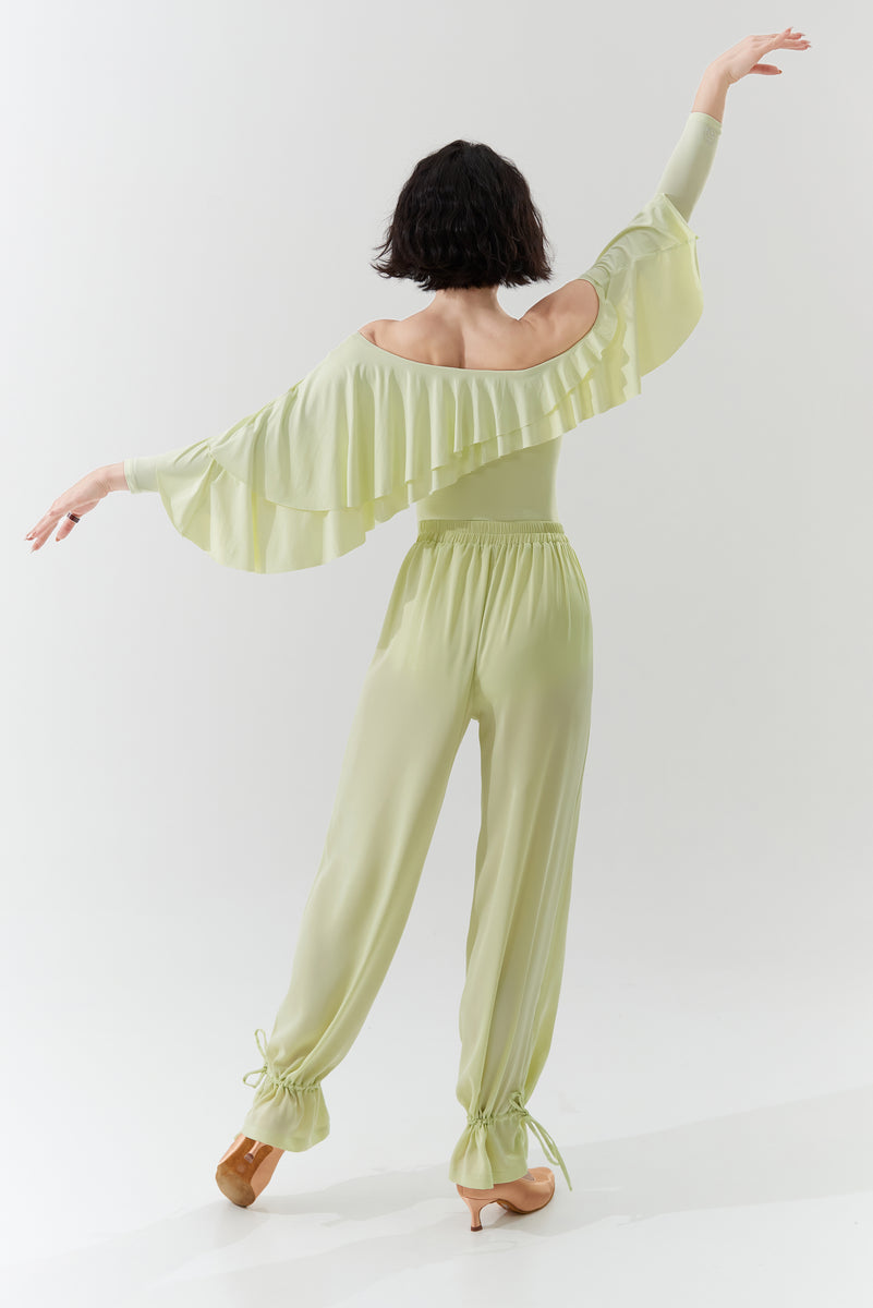 DANCE QUEEN 266-30 Aloe Vera Green Elastic Waistband Ballroom Practice Dance Sport Trouser - S