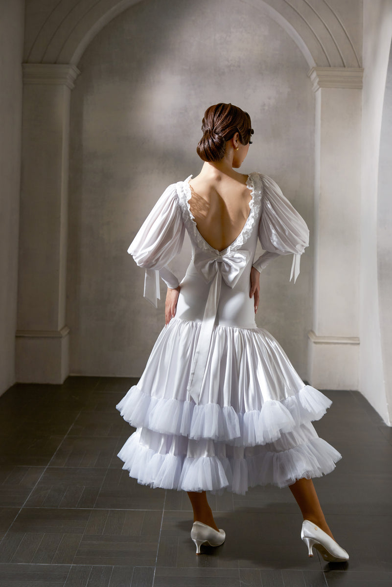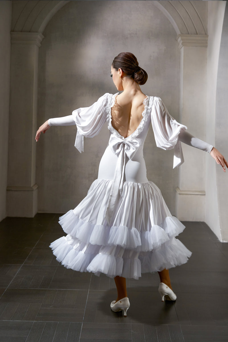 DANCE QUEEN 1036-2 White Bow Haute Couture Classic Cake skirt Customized Dress En oferta