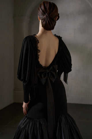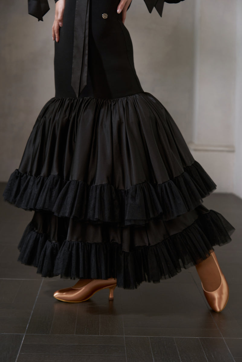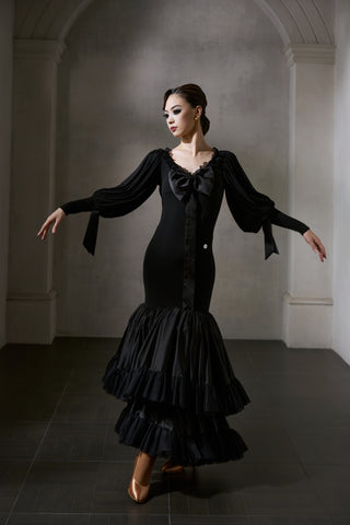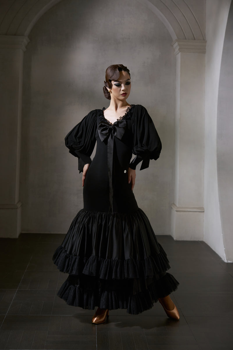 DANCE QUEEN 1036 Black Bow Haute Couture Classic Cake skirt Customized Dress - Please refer to detailed picture and leave your size in Inbox or email