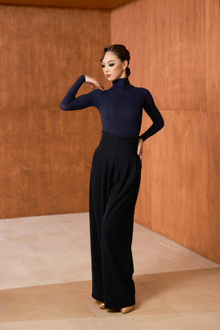 DANCE QUEEN 1050-1 Navy Blue High Neck Tight Nude Long Sleeve Woman Leotard - Navy Blue / S