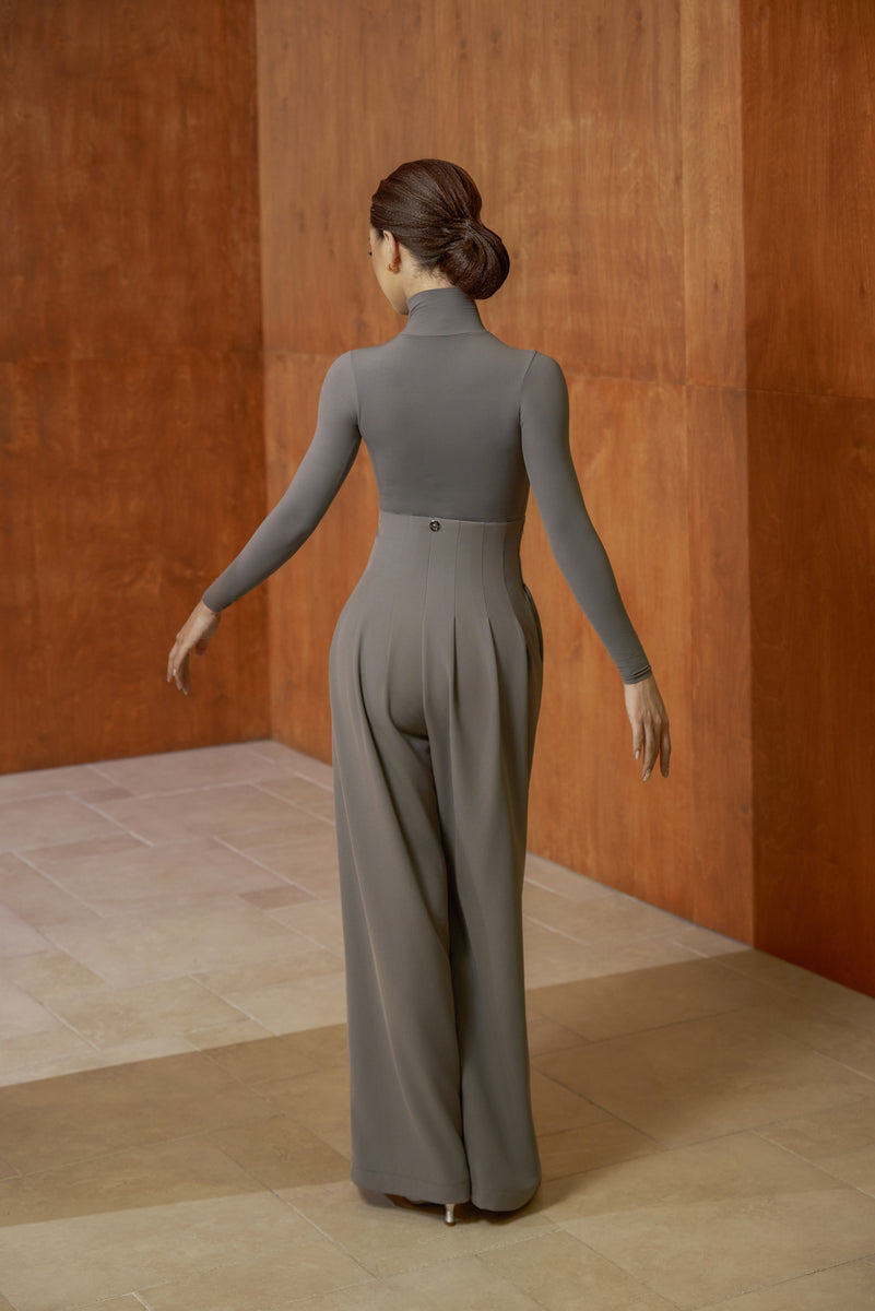 DANCE QUEEN 1050-3 Gray High Neck Tight Nude Long Sleeve Woman Leotard En solde