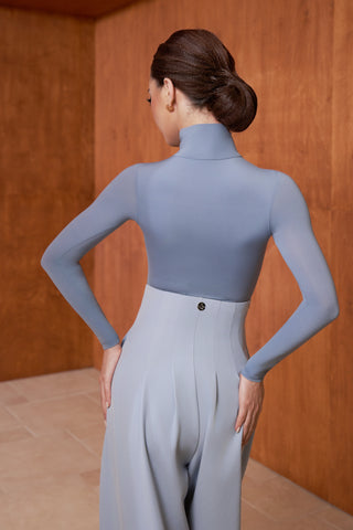 DANCE QUEEN 1050-5 High Neck Tight Nude Long Sleeve Woman Leotard - Haze Blue / S