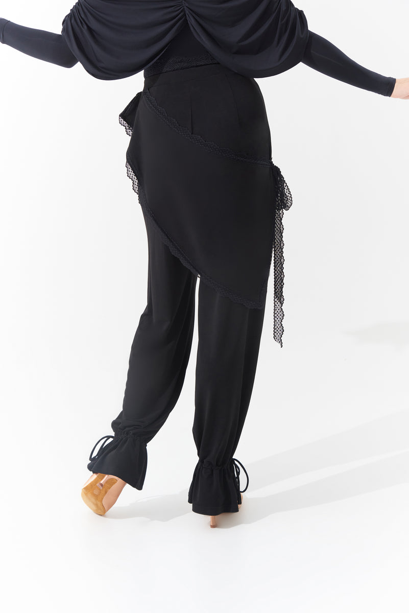 DANCE QUEEN 1102 Lace Elastic Waistband Practice Dance Sport Wide Leg Ballroom Trouser - S