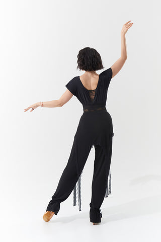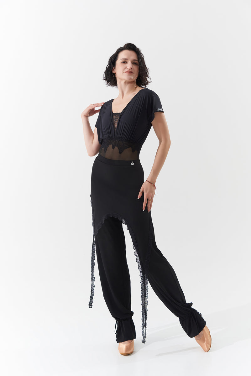 DANCE QUEEN 1104 Black V Neck Short Sleeve Ballroom Practice Dance Sport Leotard セール