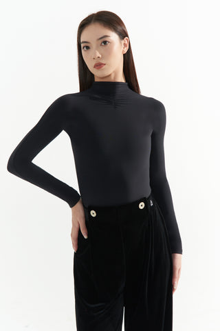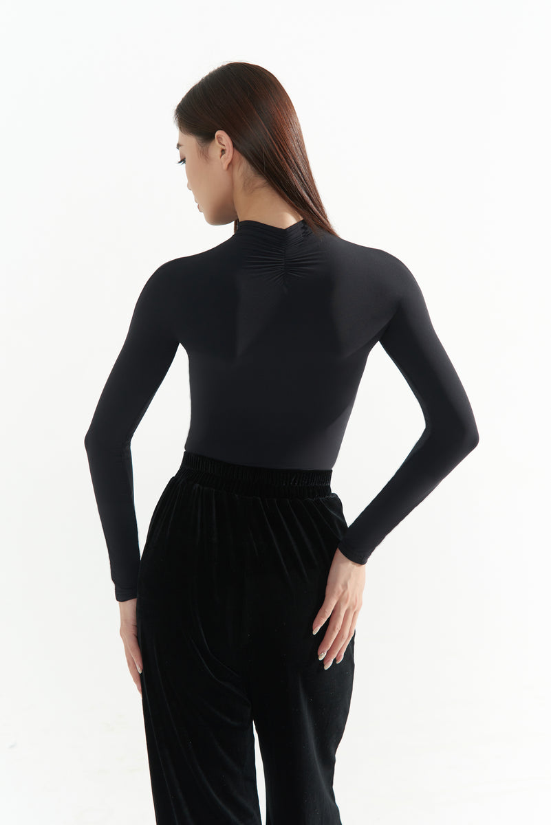 DANCE QUEEN 1066 Black High Neck Thickened Warm Ballroom Practice Dance Sport Leotard - S