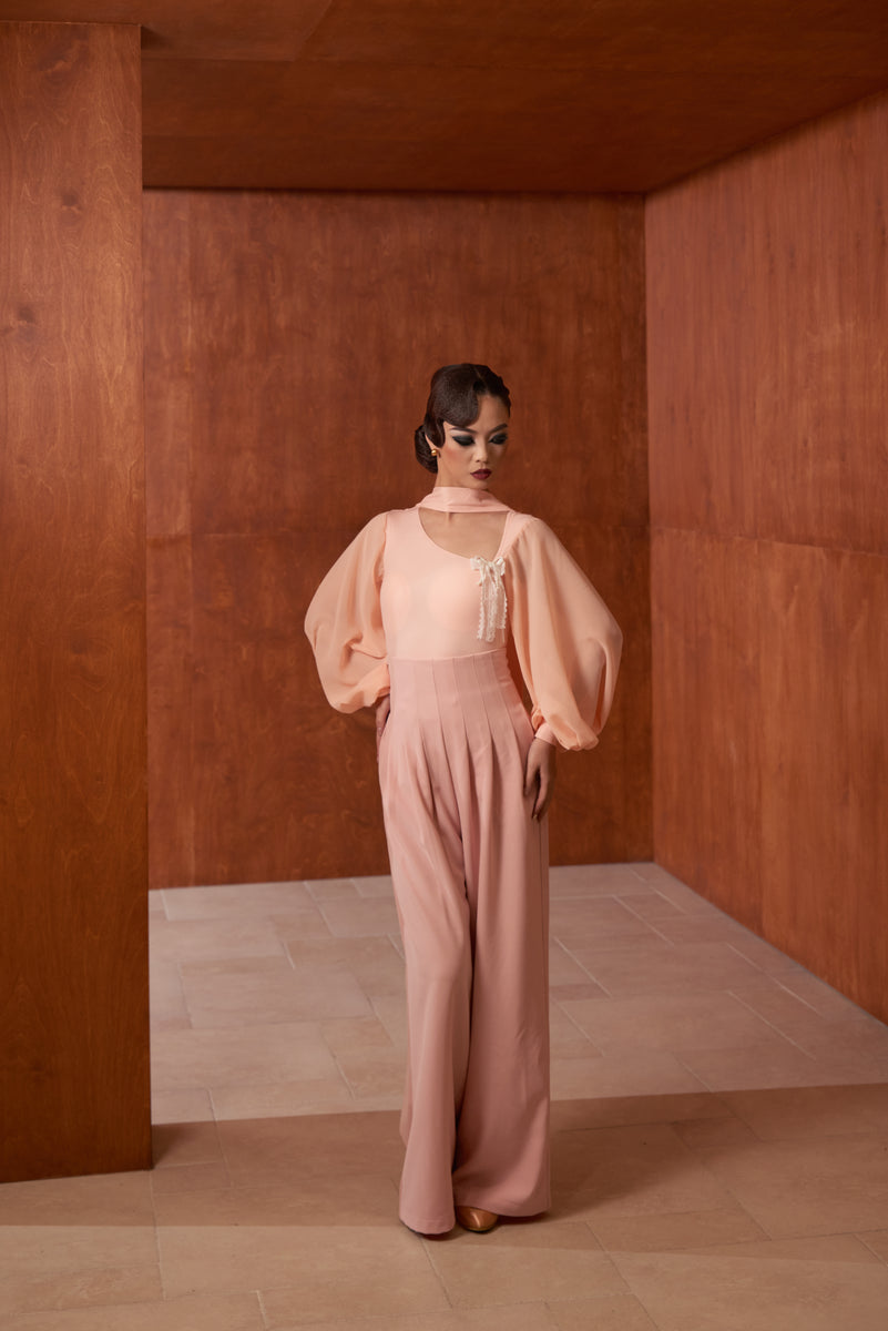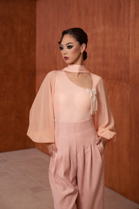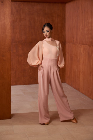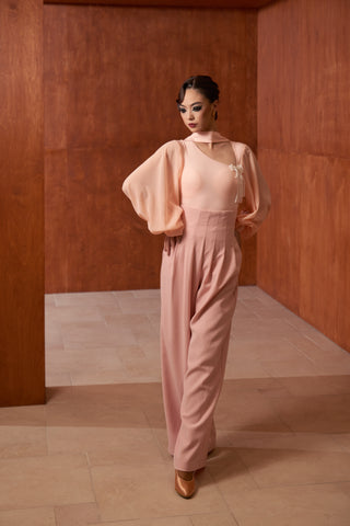 This DANCE QUEEN 808-2 ballroom leotard features a delicate pink hue with elegant hollow lantern sleeves, designed to enhance fluid movement and stage presence. Crafted for comfort and flexibility, it offers a flattering fit that supports complex dance routines, making it an ideal choice for both competitive and social ballroom dancing.