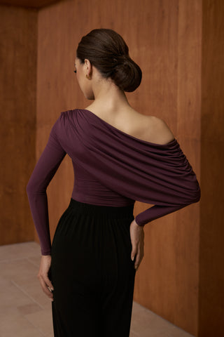 The DANCE QUEEN 821-3 Purple Off Shoulder Long Sleeve Ballroom Leotard is expertly designed to balance style and function. The off-shoulder neckline offers an elegant aesthetic that accentuates upper body lines, while the long sleeves provide optimal coverage without restricting movement. Its rich purple fabric is tailored for both durability and comfort, ensuring exceptional performance and a polished presence on the dance floor. Ideal for dancers seeking refined craftsmanship and sophisticated appeal.