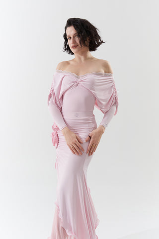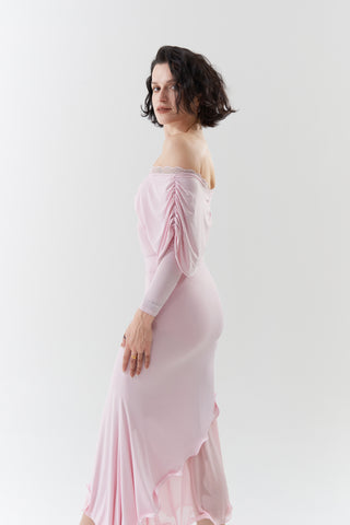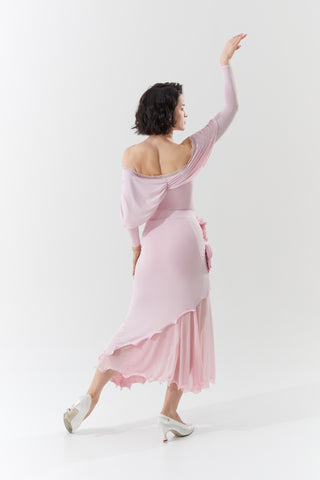 DANCE QUEEN 901-5 Sugar Pink V Neck Lace Puff Sleeve Ballroom Practice Dance Sport Leotard - S