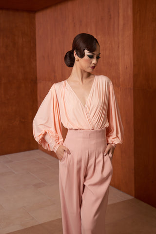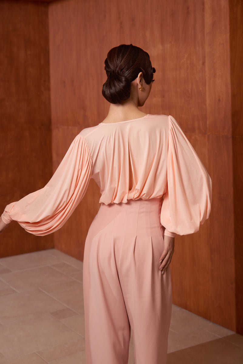 This DANCE QUEEN 531-3 leotard in soft pink combines elegance and functionality, featuring a flattering V-neck and expertly crafted pleating that enhances movement. Designed specifically for ballroom dancing, its tailored fit ensures comfort and freedom, while the lightweight, breathable fabric supports long rehearsals and performances with ease. Perfect for dancers seeking both style and performance excellence.