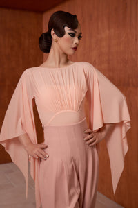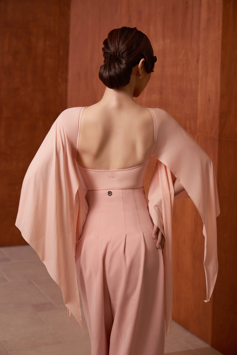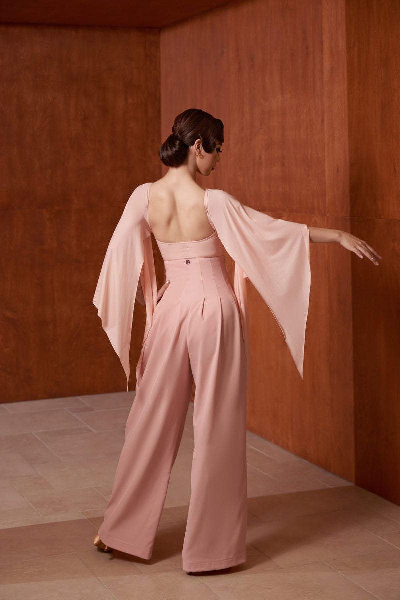 This DANCE QUEEN 723-9 leotard features a chic pink boat neck and long sleeves, designed specifically for ballroom dancing. Its tailored fit offers both elegance and freedom of movement, ensuring dancers maintain grace and comfort throughout performances. Crafted with quality materials, it supports flexibility while maintaining a polished appearance on the dance floor.