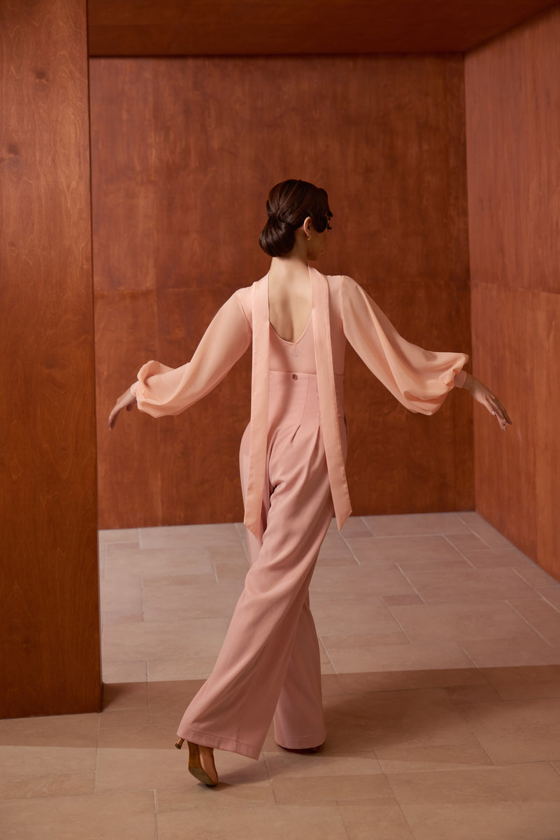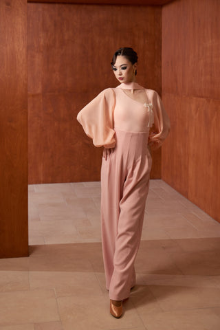 This DANCE QUEEN 808-2 ballroom leotard features a delicate pink hue with elegant hollow lantern sleeves, designed to enhance fluid movement and stage presence. Crafted for comfort and flexibility, it offers a flattering fit that supports complex dance routines, making it an ideal choice for both competitive and social ballroom dancing.