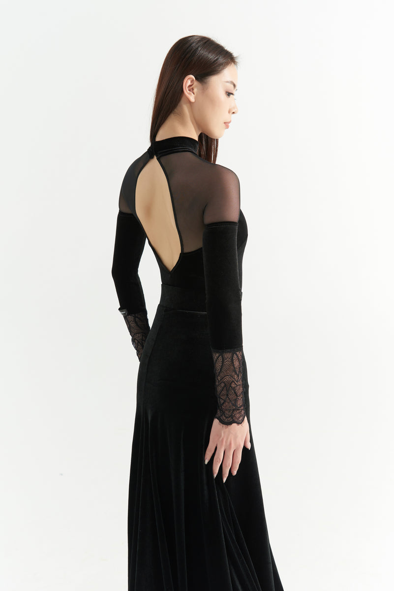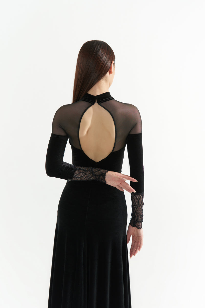 DANCE QUEEN 1065 Black High Neck Velvet Ballroom Practice Dance Sport Leotard Sale