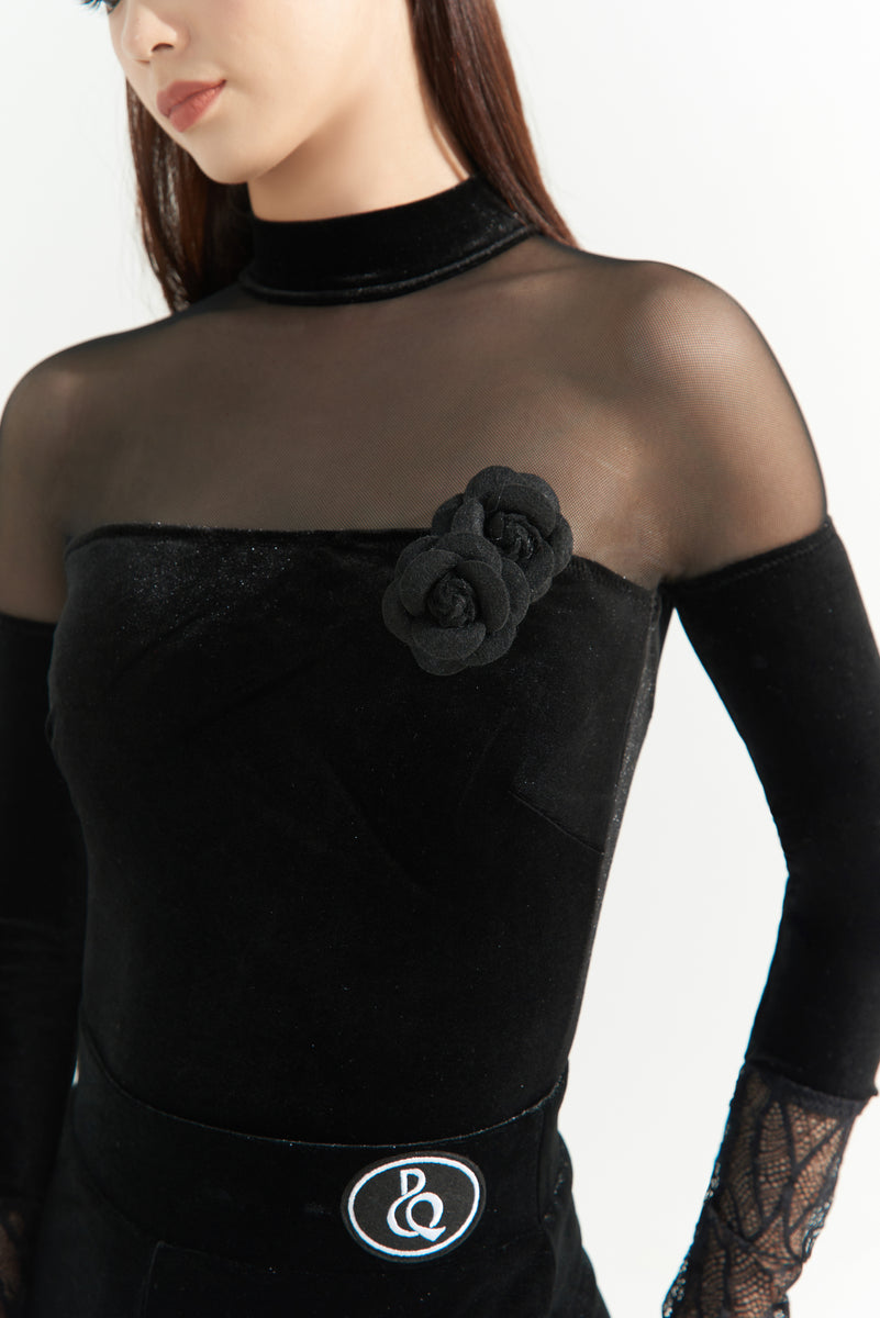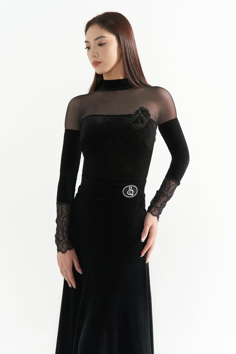 DANCE QUEEN 1065 Black High Neck Velvet Ballroom Practice Dance Sport Leotard - S