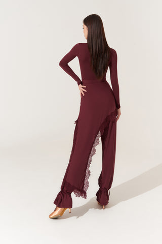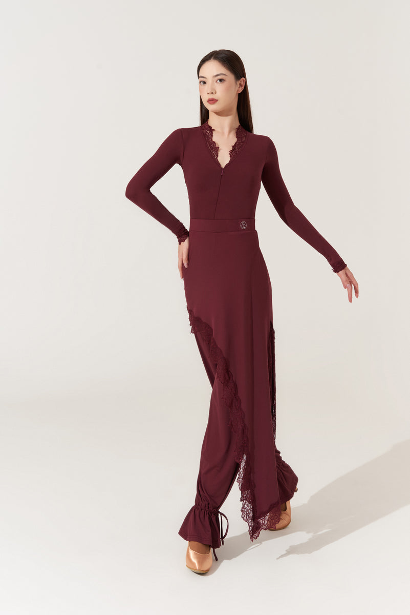 DANCE QUEEN 1059-7 Wine-Stained Red Lace V Neck Ballroom Practice Dance Sport Leotard Распродажа