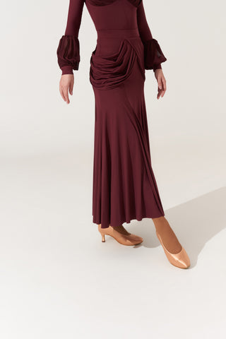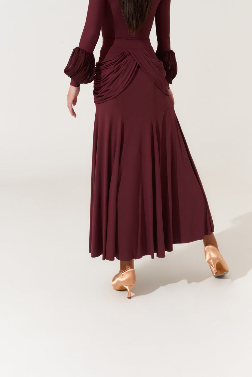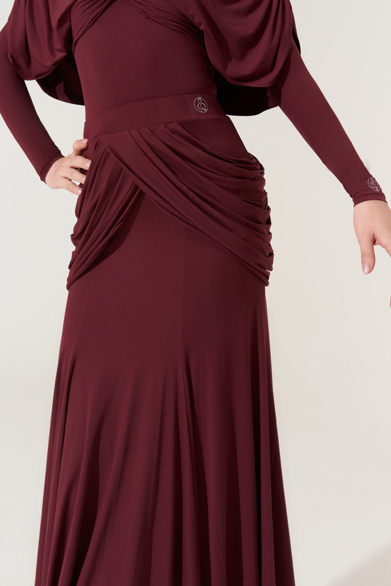 DANCE QUEEN 817-2 Wine-Stained Red Pleated Ballroom Practice Dance Sport Skirt - S