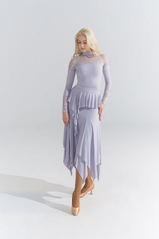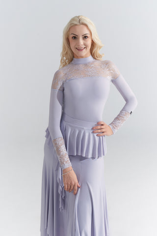 DANCE QUEEN 1065-3 Lavender Lace Long Sleeve Ballroom Practice Dance Sport Leotard Распродажа