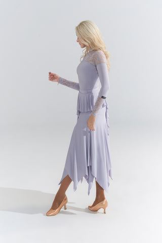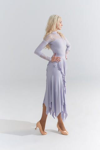 DANCE QUEEN 1065-3 Lavender Lace Long Sleeve Ballroom Practice Dance Sport Leotard - S