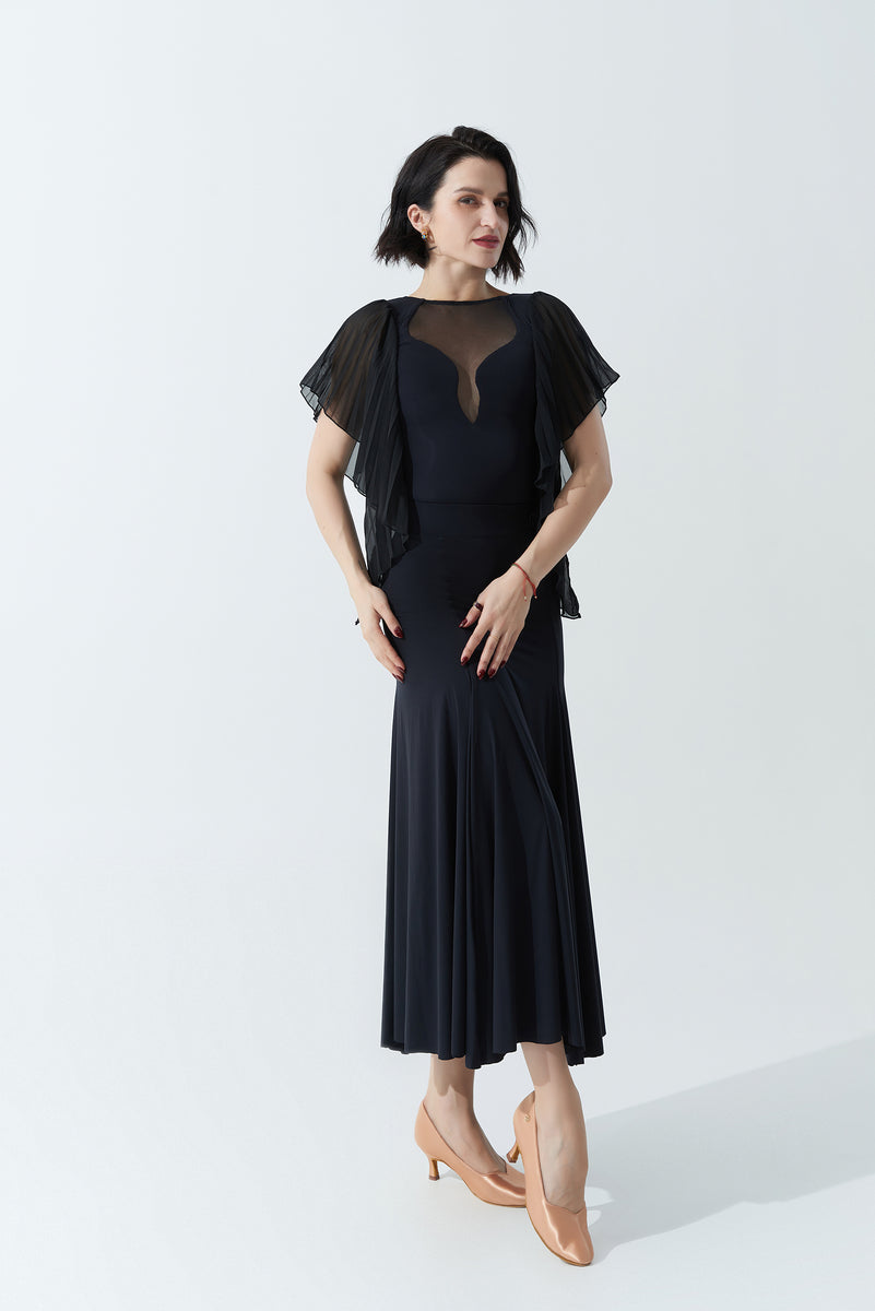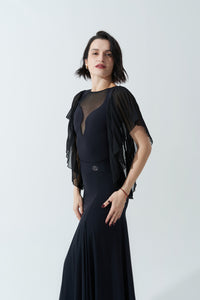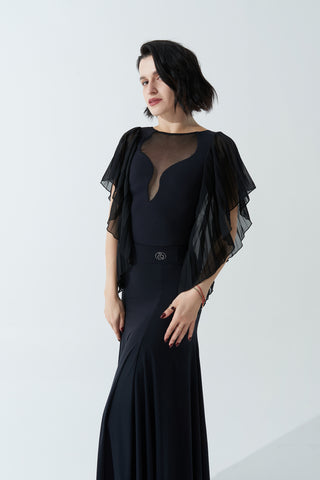 DANCE QUEEN 1122 Classic Black Mesh Float Practice Dance Sport Leotard - S