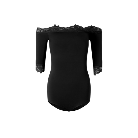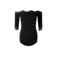 The DANCE QUEEN 943-12 Black Lace Off Shoulder Ballroom Practice Dance Sport Leotard features exquisite black lace paired with an off-shoulder design that emphasizes elegance and fluidity. Crafted to provide both comfort and freedom of movement, this leotard is ideal for dancers seeking a sophisticated and polished look during practice sessions.